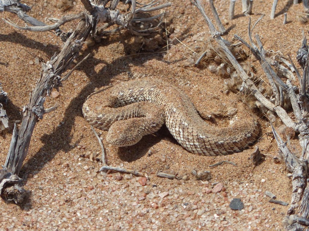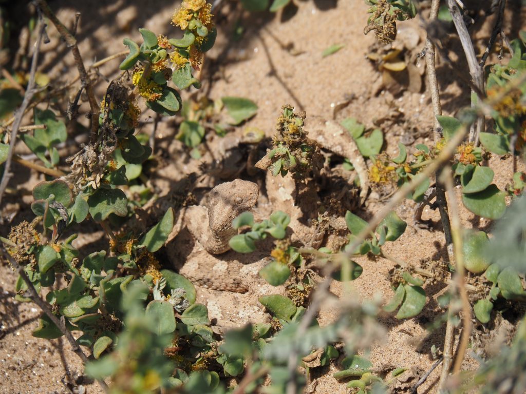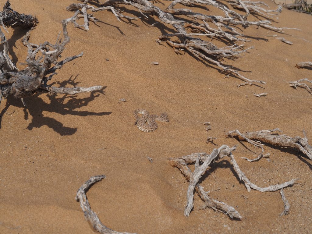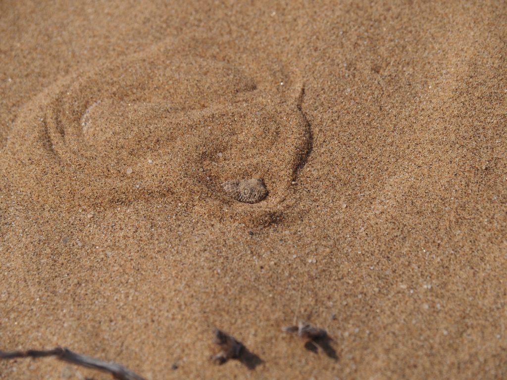 Nach der Pause geht es weiter mit dem nächsten Highlight. Chantelle hat eine Sandviper gefunden. Wie immer gut getarnt.