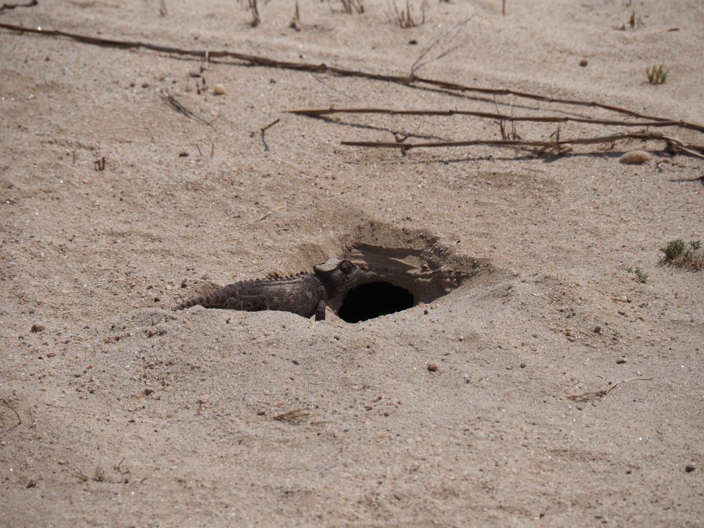 Das nächste Tier war eine Schaufelnasen Eidechse. Die ist richtig schnell unterwegs.