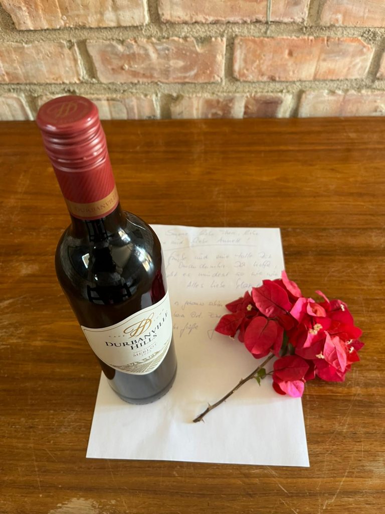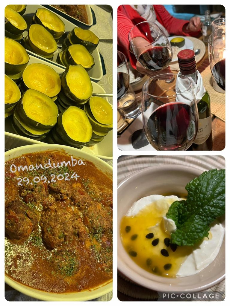 Zum Sundowner haben wir uns dann im Häuschen von Simone und Annett getroffen. Danach sind wir zum Abendessen.