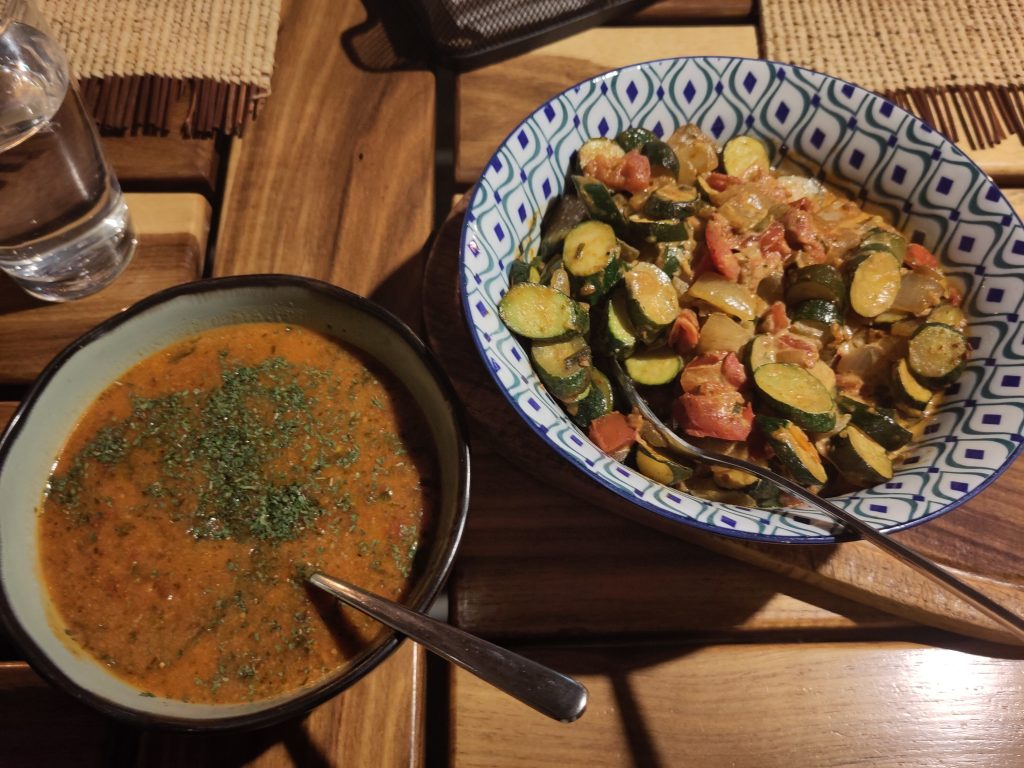 Für mich als Vegetarierin gab es extra noch einen Gemüsetopf mit Tomatensoße.