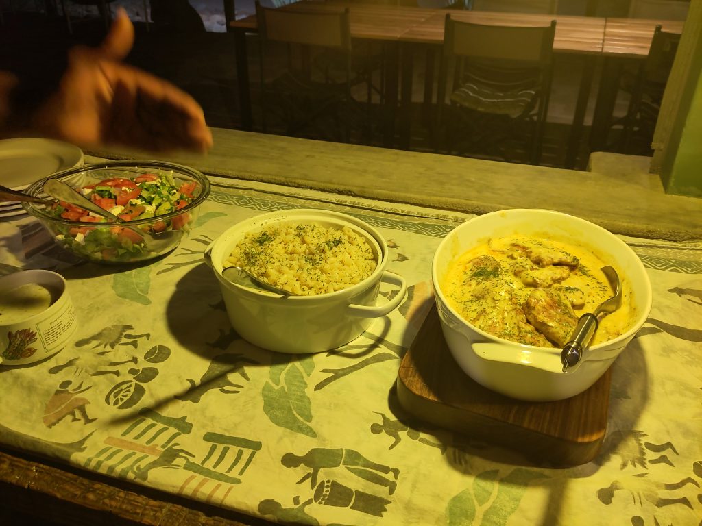 Im Dunkeln geht es dann wieder zurück und wir genießen unser Abendessen. Heute sind wir alleine an der Lodge.