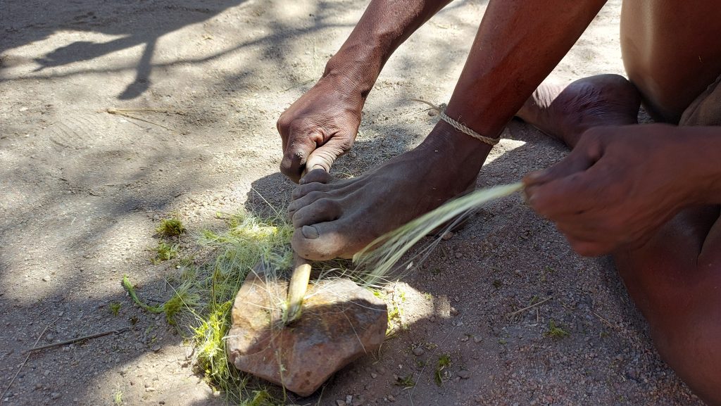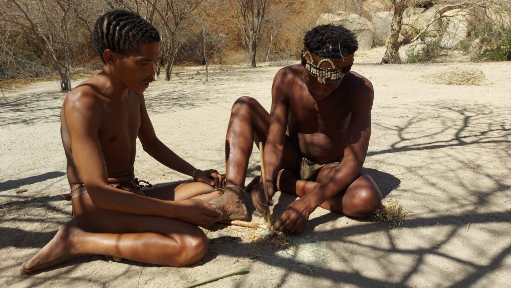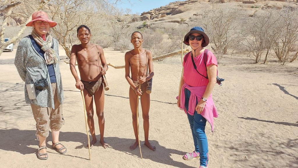 Simone und Annett haben sich für eine Führung mit dem ursprünglichen Leben der San in ihrem traditionellen Dorf entschieden.