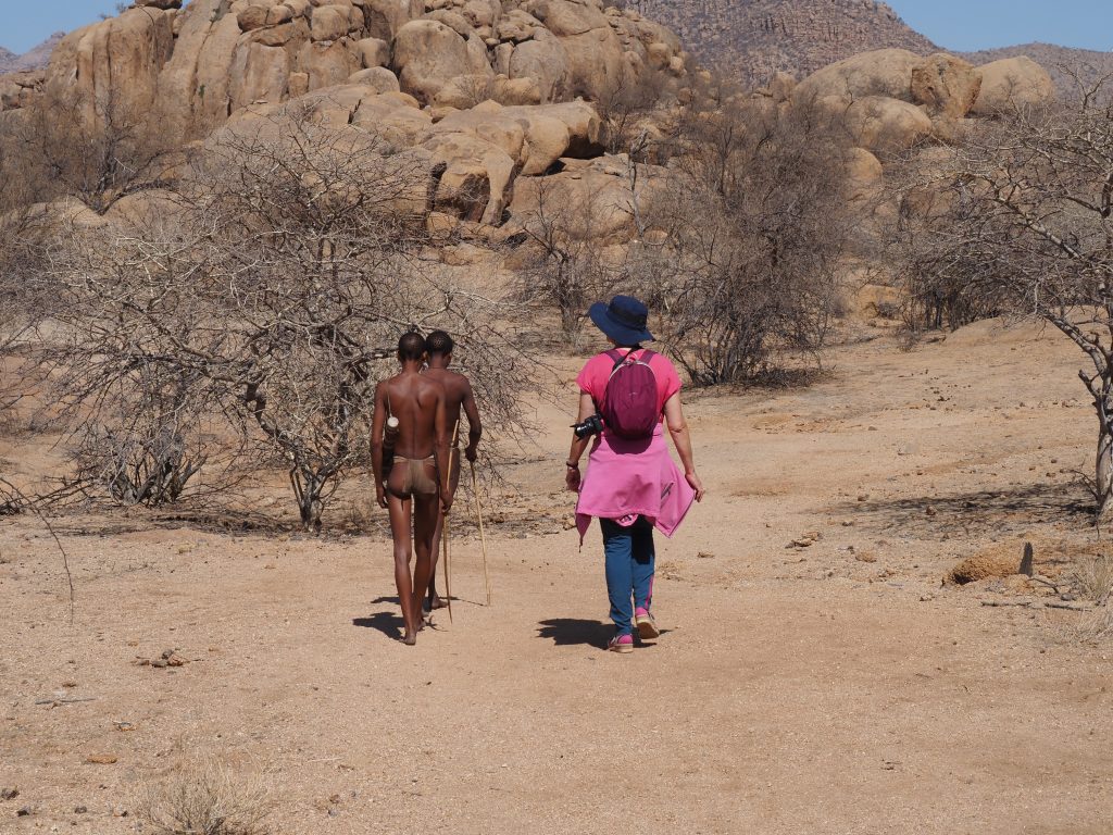 Heike und ich haben uns für eine kleine Wanderung zu verschiedenen Felsmalereien sowie Informationen zu traditionellen Pflanzen und zum Jagen entschieden.