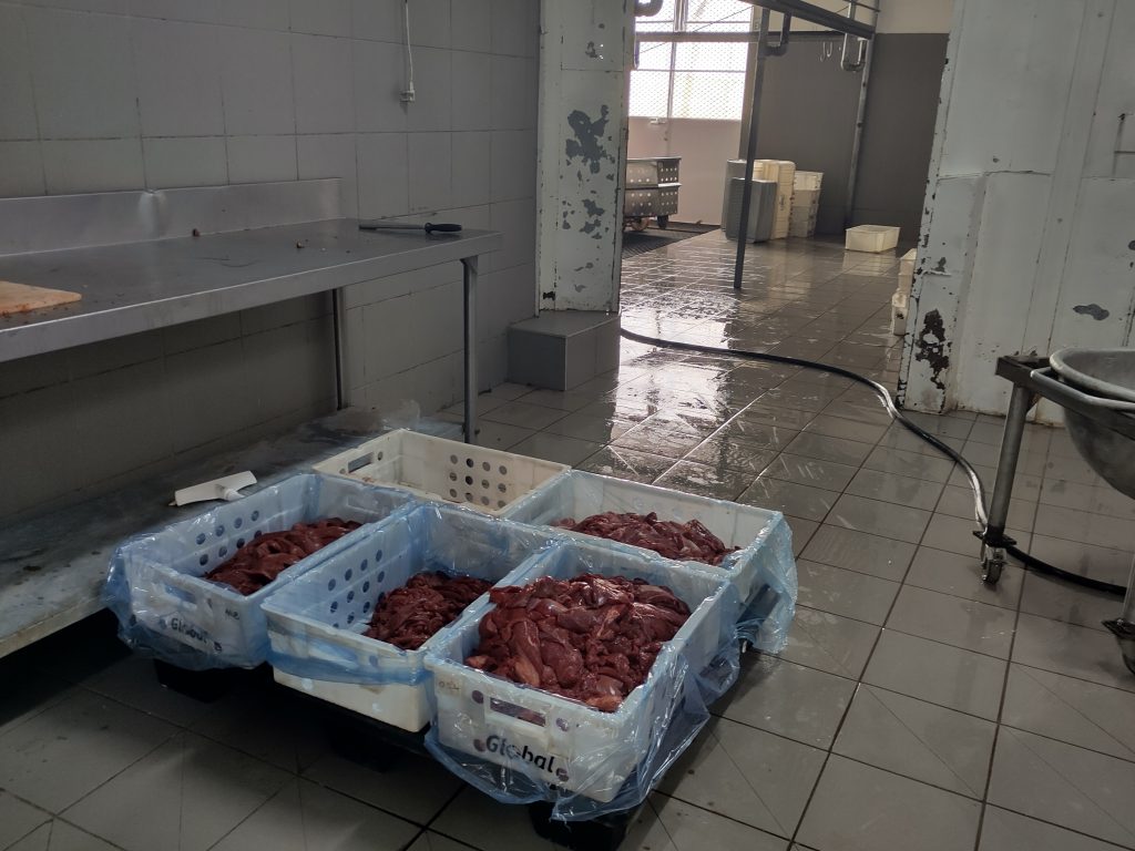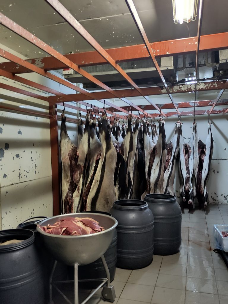 In der Metzgerei war zwar schon fast Feierabend und es wurde gerade geputzt, trotzdem konnten wir uns alles anschauen und haben viel erklärt bekommen.