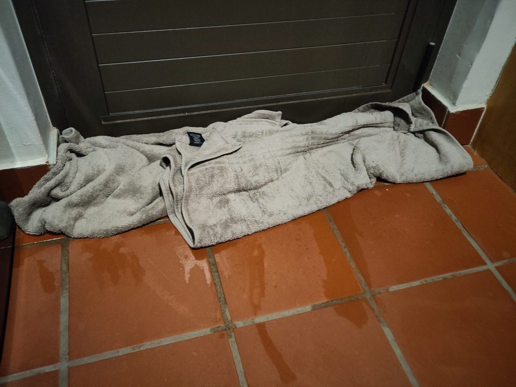 Zumindest bis irgendwann nachts. Da fing es an zu donnern und in Strömen zu regnen. Diesmal lief auch Wasser ins Chalet und wir haben mit Handtücher die Pfützen gestoppt.
