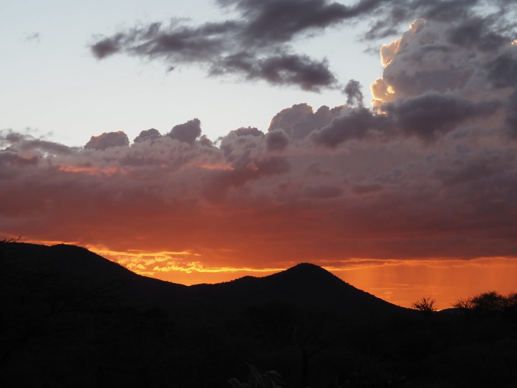Nach dem Sundowner auf unserer Terrasse sind wir zum Abendessen rüber ins Farmhaus gegangen.