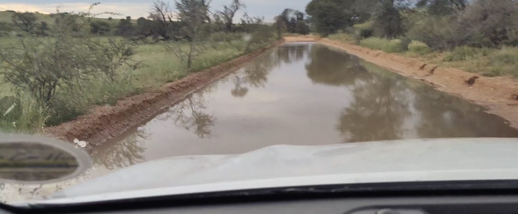 was für Wassermassen!!! So weit südlich im Park hatten wir noch nie so viel Wasser! Unter diesen Umständen kann man ja beruhigt Nossob in Nassob umbenennen…