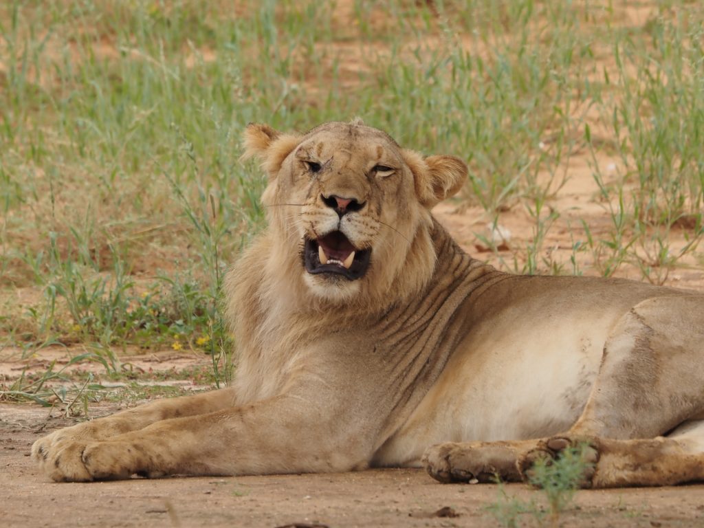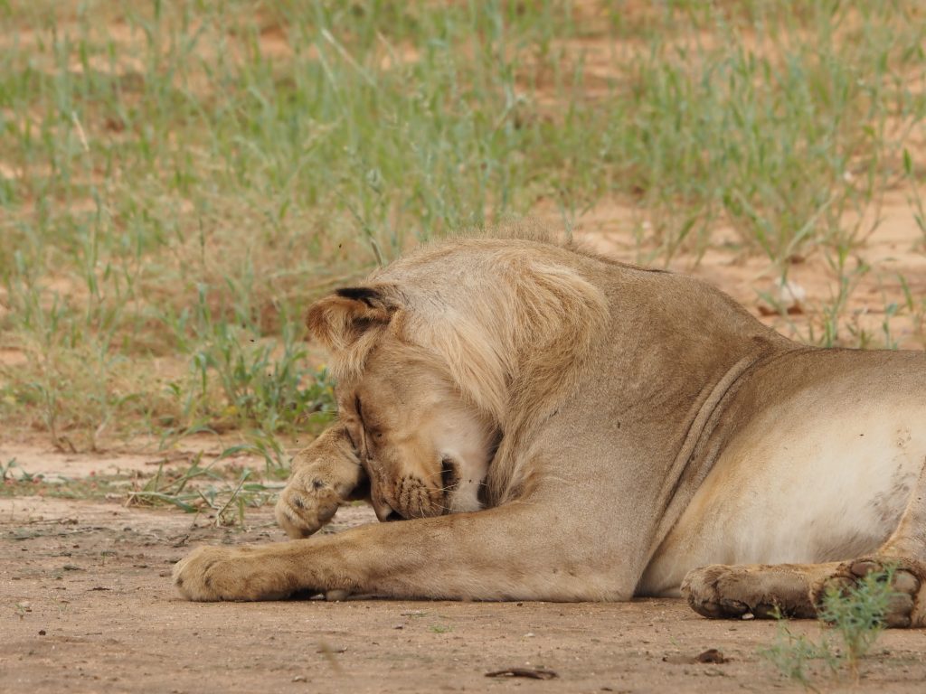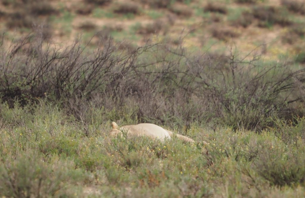 Kurze Zeit später haben wir eine Löwin entdeckt. Hätte sie den Kopf nicht gehoben, dann wären wir wohl vorbei gefahren. Aber so hatten wir Glück und konnten sie eine zeitlang beobachten. Als sie sich dann wieder hinlegte, sind wir weiterfahren.