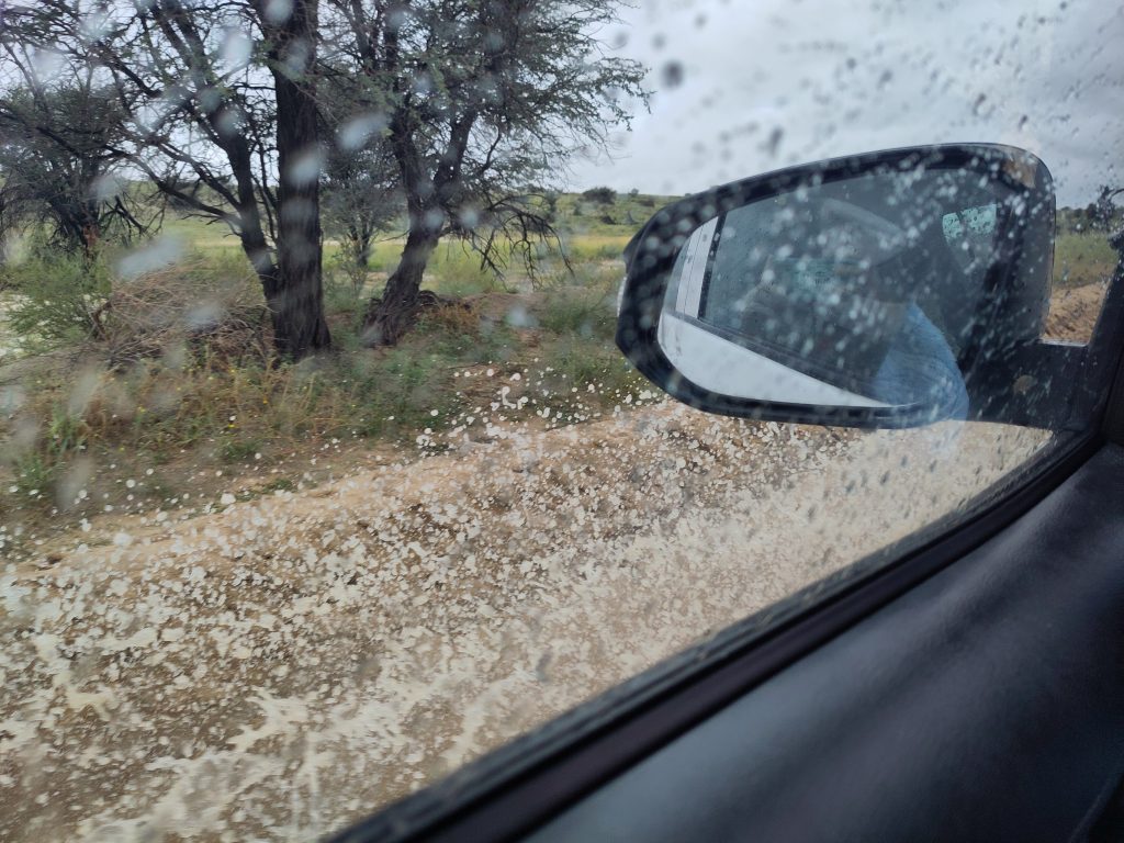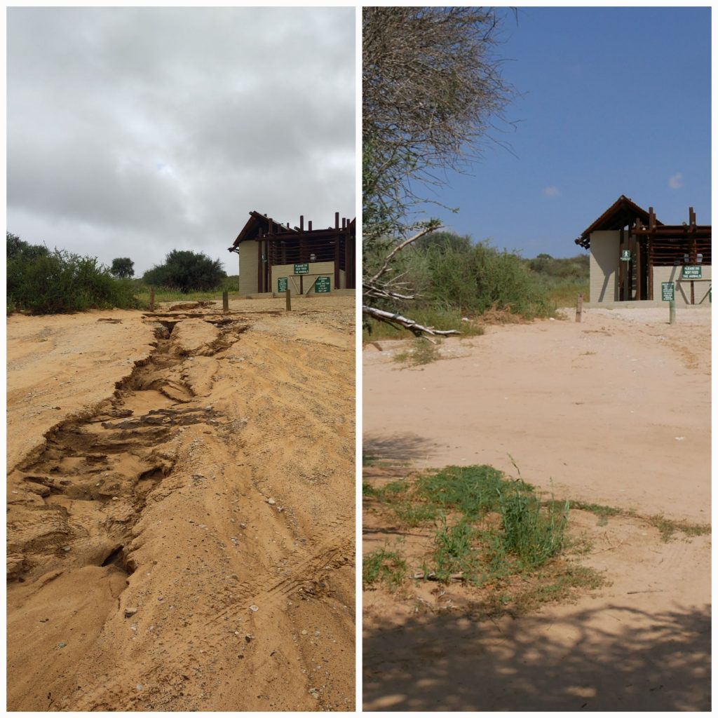 In der Hoffnung, dass ein paar Autos vor uns die Strecke nach Twee Rivieren heute schon gefahren sind, haben wir uns mit dem auschecken etwas Zeit gelassen. Eine Autospur haben wir gesehen und ein Grader war zum Glück schon vor uns unterwegs und hat die Straße etwas glatt geschoben.