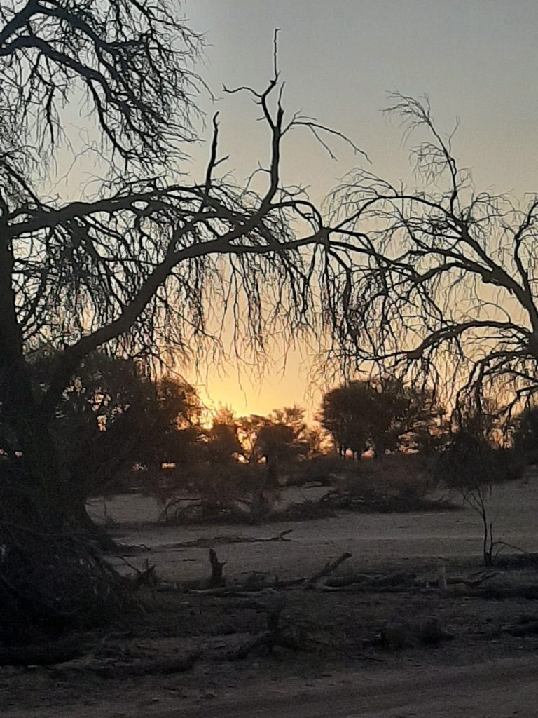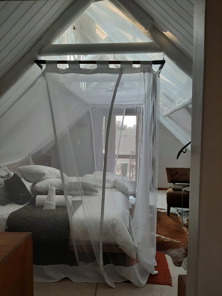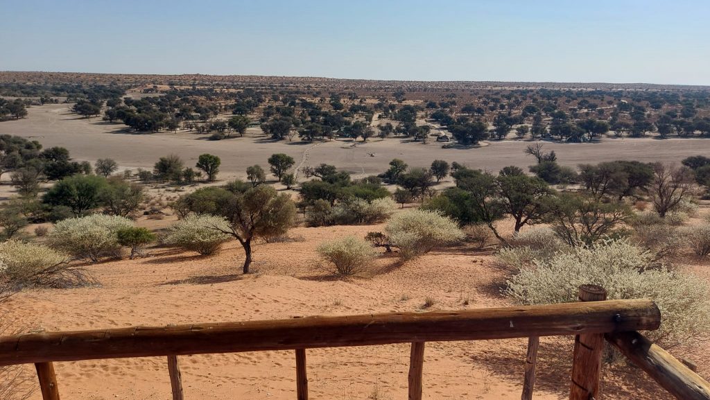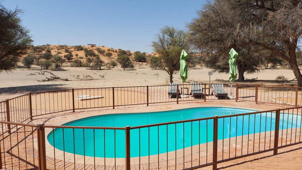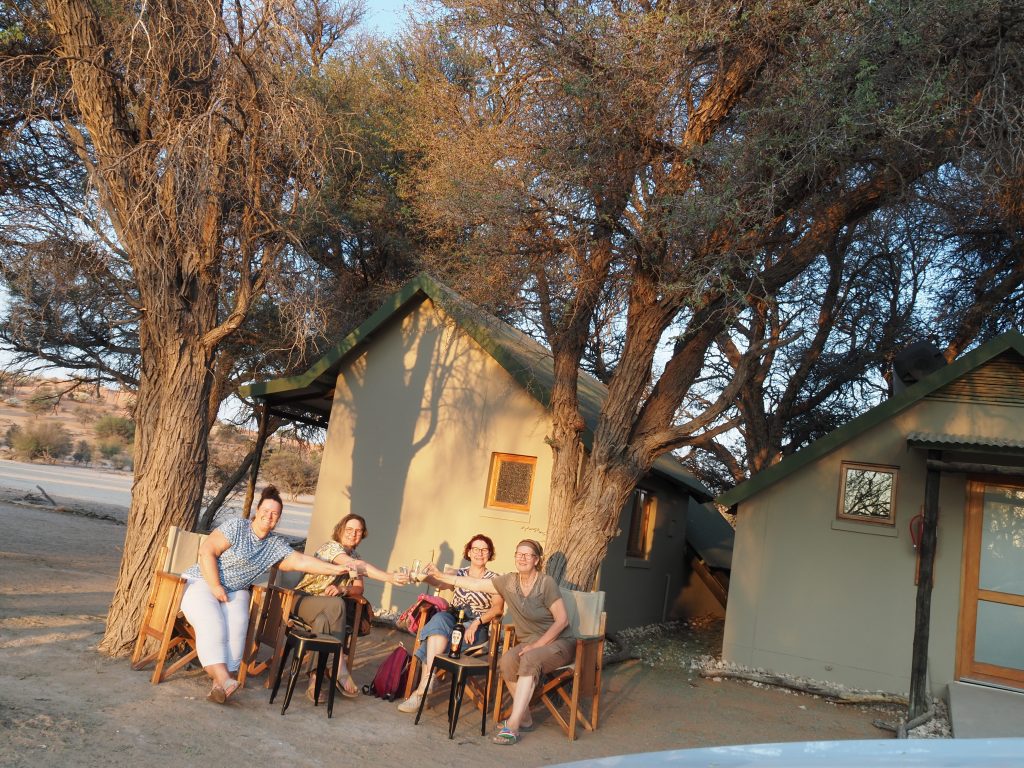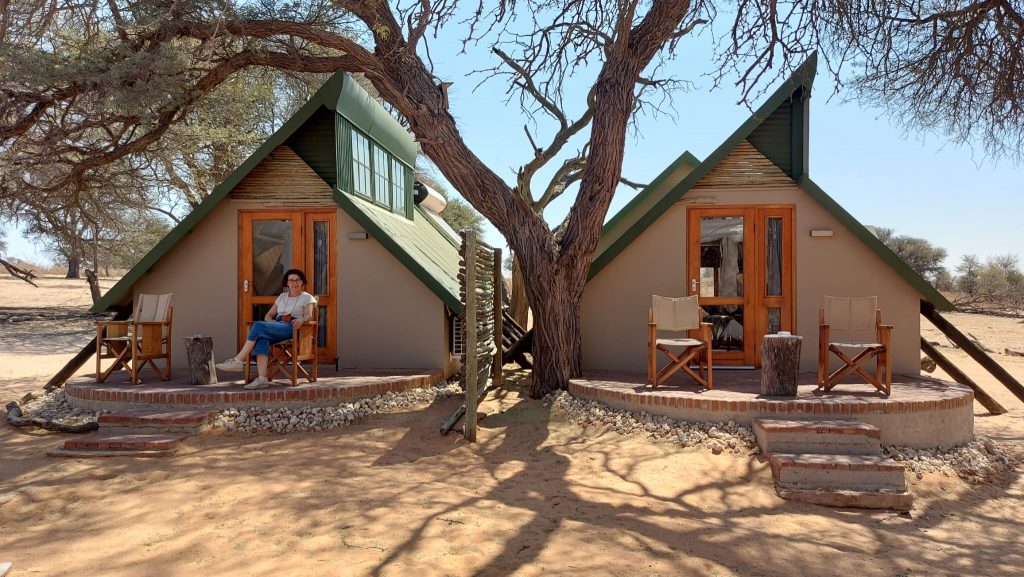 Wir haben zwei Übernachtungen in der Kalahari Game Lodge. Jeder von uns hat ein eigenes kleines Häuschen. Zwei Stück liegen immer direkt beieinander.