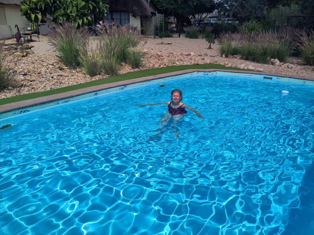 Wir haben aber erstmal wieder unseren ersten Kaffee auf der Terrasse getrunken und sind dann um kurz vor neun rüber ins Farmhaus zum Frühstück. Gegen 12 Uhr haben wir uns dann von Susanne und Hans-Dieter verabschiedet und es ging eine kurze Strecke bis zur Immanuel Wilderness Lodge.