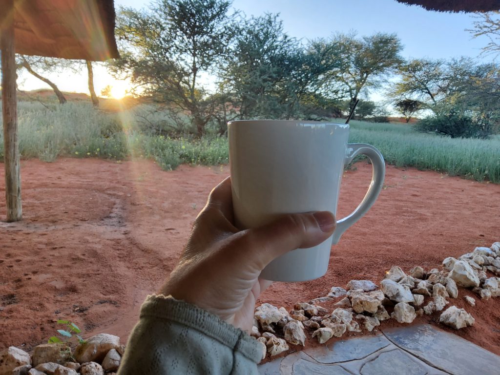 Die erste Tasse Kaffee gab es heute im Garten von der Unterkunft.
