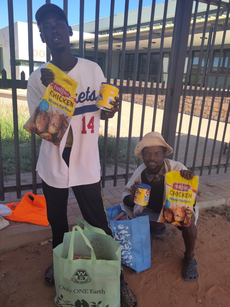 Mit Romeo und Benny waren wir dann noch im Supermarkt und haben Mehl, Zucker, Kaffee und Fleisch gekauft. Kurz nachdem wir vor knapp drei Wochen dort waren, hatte es in Kalkrand sehr stark geregnet. Die Hauptstraße stand vollkommen unter Wasser und einige Hütten hatte es auch erwischt.
