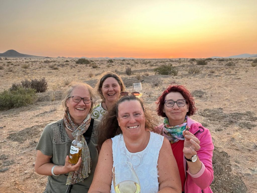 Diese Nacht haben jeweils Heike und Annett draußen geschlafen. Nach einer ersten Tasse Kaffee ging es heute schon vor dem Frühstück zu einer morgendlichen Wildbeobachtungsfahrt.