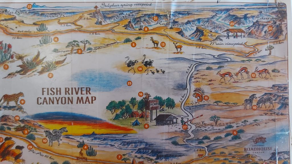 Bei Hobas haben wir den Eintritt bezahlt, noch eine Pipipause gemacht und sind dann zum ersten Viewpoint.