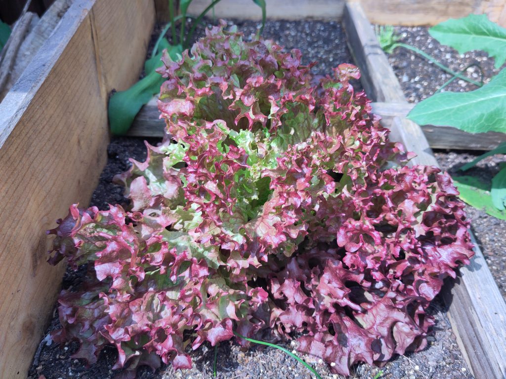 Unser Abendessen für heute ist auch gesichert. Im Beet war vor dem Urlaub ein Minipflänzchen Salat, welches irgendwie den Winter überlebt hat. Und nun kann ich heute Abend ernten.