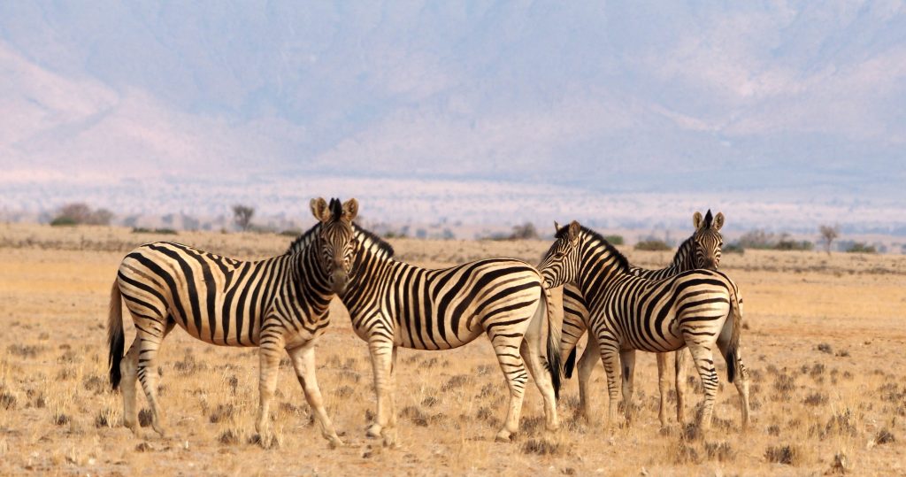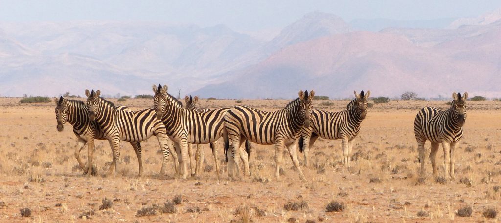 Gegen 16 Uhr haben wir dann endlich das Tor zur Tsondab Valley Lodge erreicht, aber bis wir an der Lodge angekommen sind, hat es noch ein wenig gedauert. Denn kurz nach dem Tor stand eine Herde Zebras in schönstem Abendlicht.