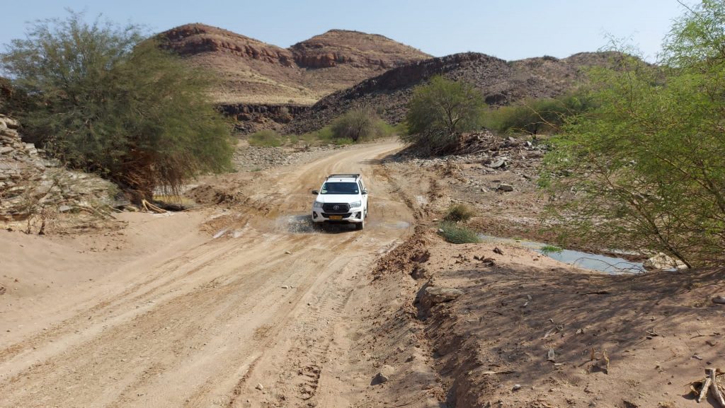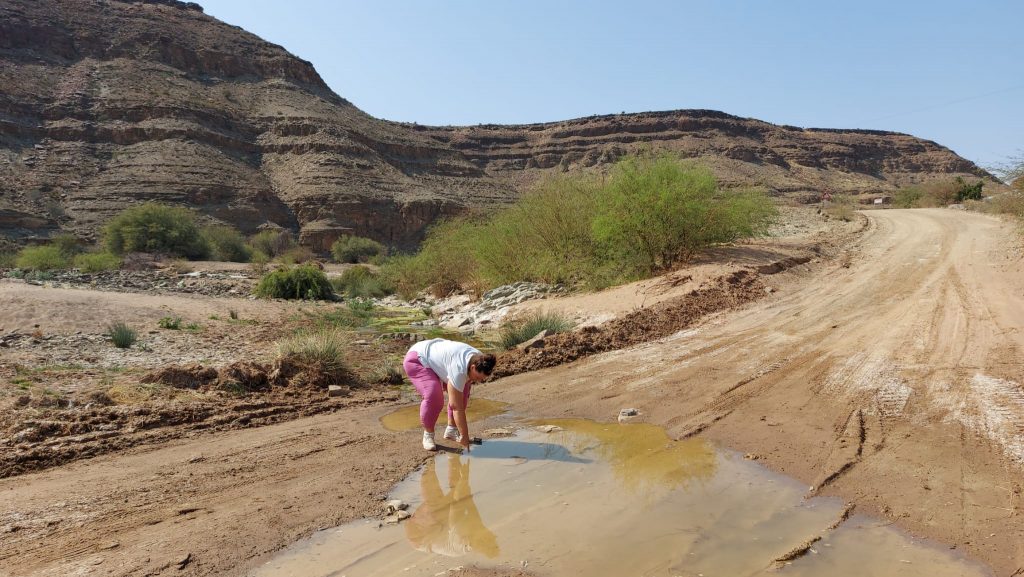 Eine Wasserdurchfahrt gab es auch. Simone hat ganz fachmännisch die Tiefe geprüft.