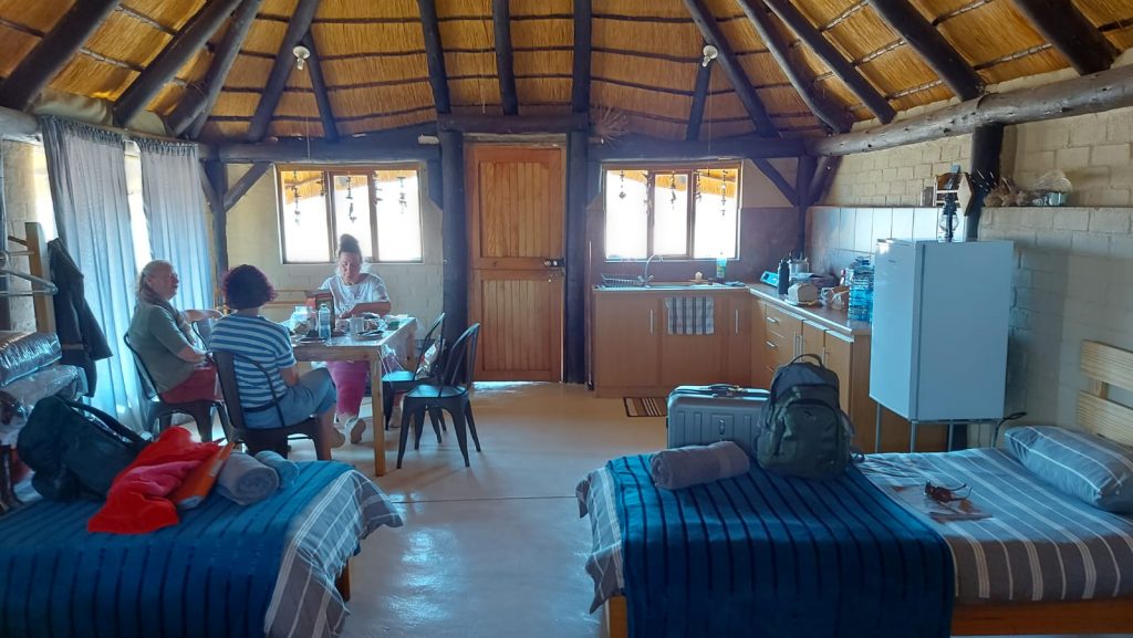 Unsere nächste Unterkunft ist die Farm Bremen. Hier haben wir ein Selbstversorger Häuschen. Darin gibt es vier Einzelbetten, ein Doppelbett, eine Küchenzeile und einen Tisch mit Stühlen. Links daneben sind zwei Toiletten und zwei Duschen.